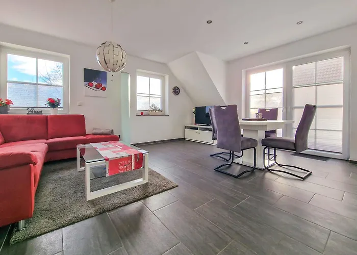 Denne store indkvartering på 80 m^2 ligger 450 m fra Nationalpark-Haus Greetsiel og lige ved Greetsieler Zwillingsmuhlen. Pilsumer Leuchtturm er inden for en 10-minutters kørsel væk. Greetsieler Zwillingsmuhlen serverer en række retter tysk.